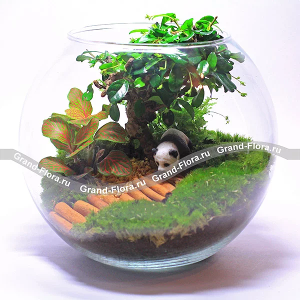 Стандартный: флорариум, бонсай, фиттония, мох, фигурка панды.